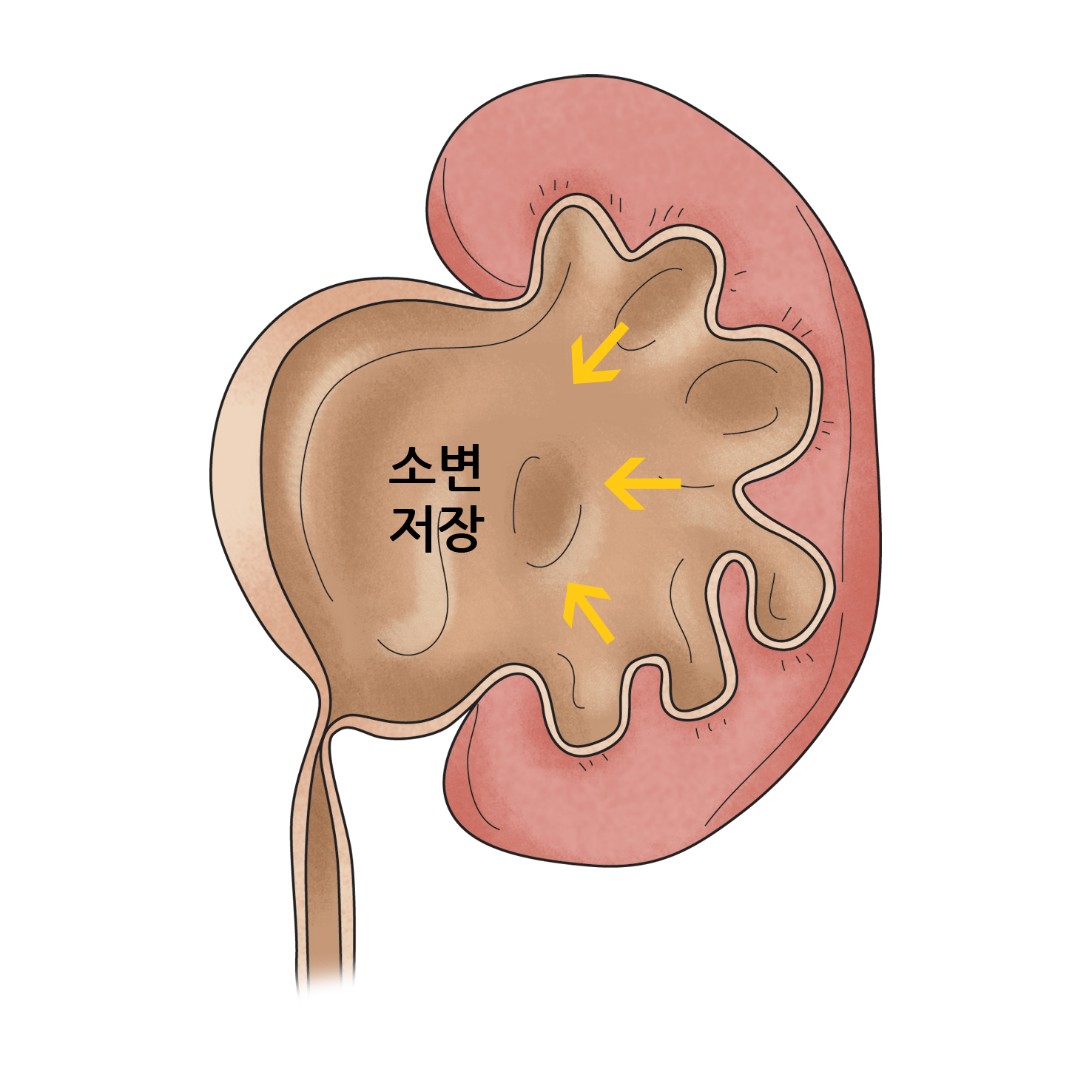 신장에서 만들어진 소변이 모이는 깔대기 모양의 공간으로 신우에 모인 소변은 요관으로 흘러내려가 방광에 모여 있다가 배설됩니다.