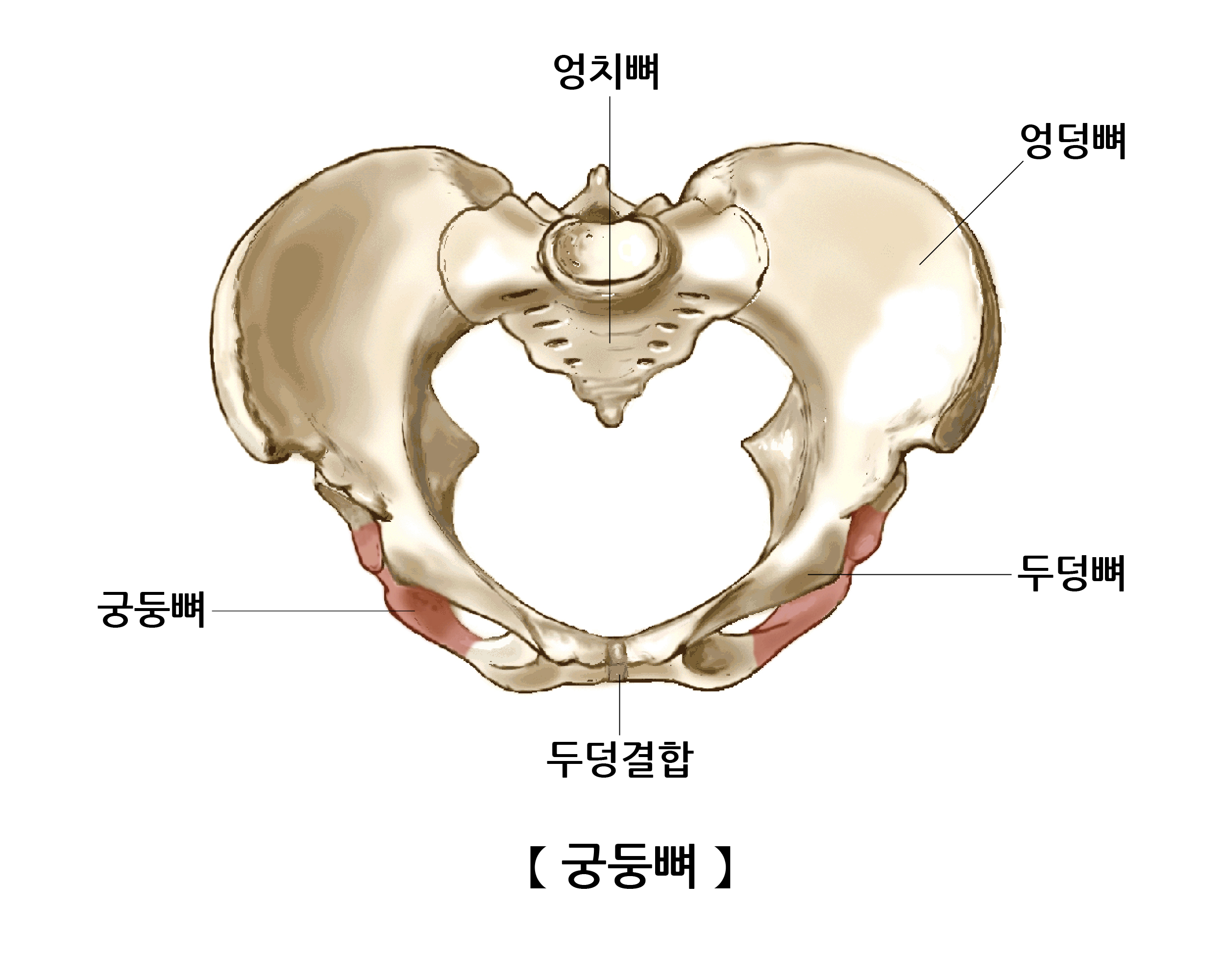 궁둥뼈는 골반을 구성하는 세 뼈 중 하나로, 세 뼈가 함께 엉덩관절을 구성합니다.