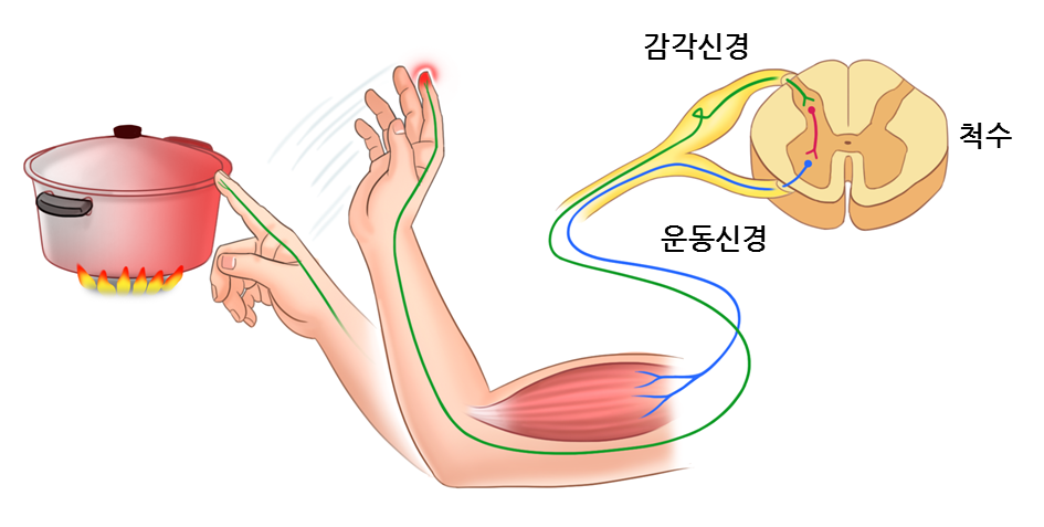 말초 신경에서 감각신경은 척수의 등쪽, 운동신경은 척수의 배쪽에 위치하고 있습니다.
