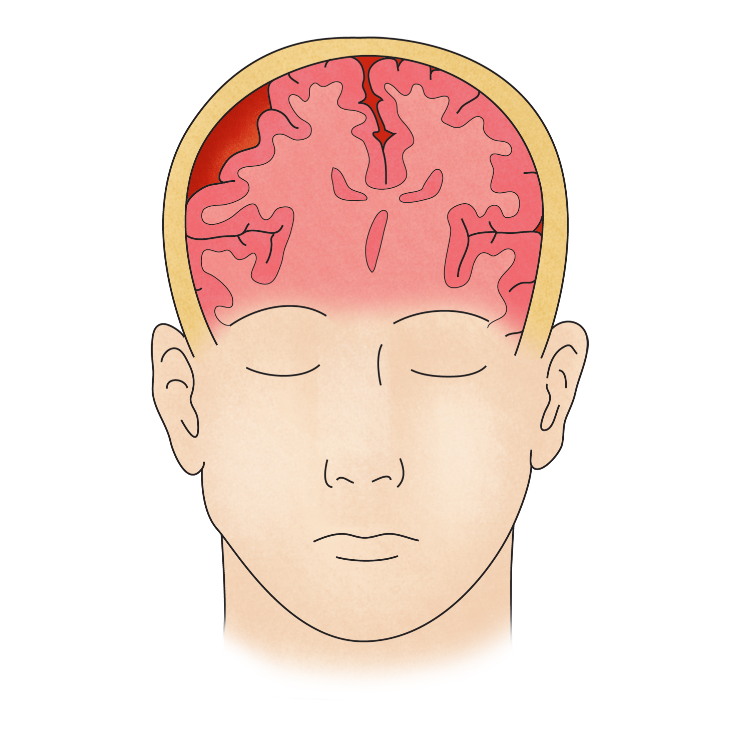 환자는 어지럽거나, 머리가 아픈 증상을 호소하며, 그 후에는 잘 토합니다. 그와 동시에 몸의 반신이 말을 잘 듣지 않습니다. 또한 갑작스러운 의식 변화, 두통, 혈압 상승, 반신 편마비 등이 나타나기도 합니다.