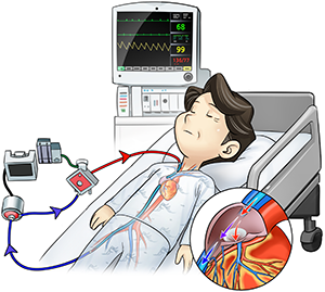 심인성 쇼크가 발생하거나, 좌심실 구축률이 30% 이하로 심한 저하를 보이면서 lactate 증가 등 조직 저산소증 (tissue hypoxia)의 증거가 있고, 좌심실 구축률이 중등도의 저하가 있더라도 심실빈맥이나 세동, 완전방실전도차단 등의 중증부정맥을 동반하는 경우에는 임시형 기계적 순환보조장치 (temporary mechanical circulatory support)의 적용을 준비해야 합니다.