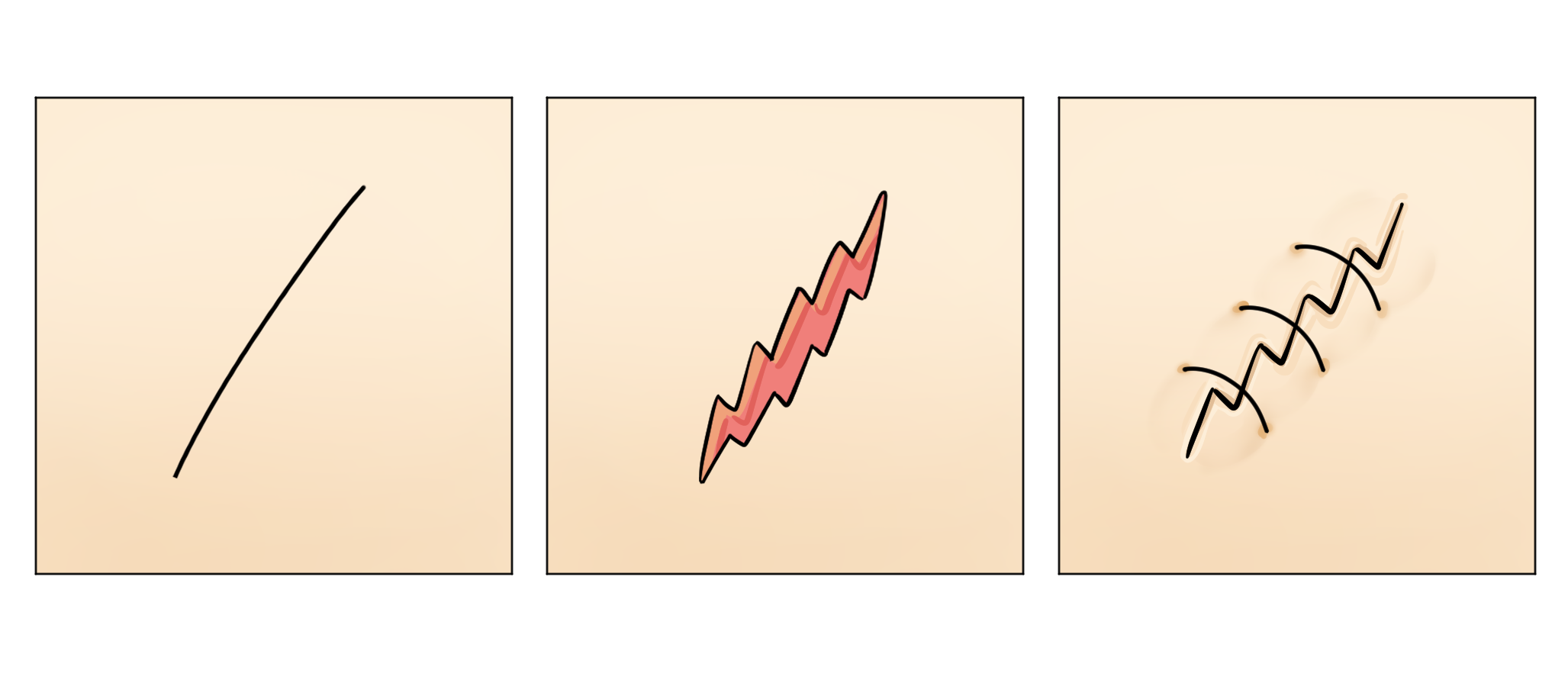 외상이나 화상에 의해 피부가 손실되면 반흔이 주위의 근육과 힘줄에 영향을 주어 운동 범위가 제한됩니다. 구축성 반흔은 근본적으로 피부가 모자라 생기므로 다른 곳에서 피부를 가져 오는 피부 이식술이나 피판술이 필요할 수 있고, 조직 확장기를 사용하여 주위의 피부를 늘려서 이용하기도 합니다.