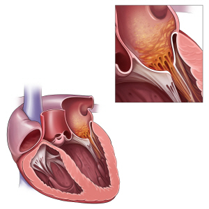 염증으로 인해 판막엽이 뚫리거나 판막 끈이 끊어짐으로써 판막이 잘 닫히지 않는 판막 역류가 생길 수 있습니다.