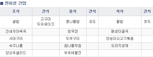 환자의 질환과 치료상태에 따라 식사요법의 원칙이 달라질수 있으므로 의료진, 영양전문가와 상의합니다.