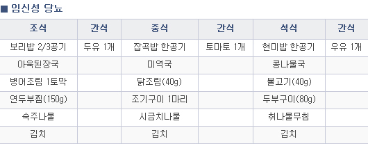 임신기간 중에 필요한 영양소를 제공하여 적절한 체중증가와 정상 혈당을 유지하면서 케톤이 발생하지 않도록 당조절이 필요한 식사입니다.